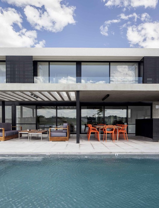 Text description provided by the architects. In the beginning, this house was planned as a weekend residence, but with the progress of the project, the owners were enthusiastic about transforming it into a permanent home. So, certain sectors were expanded, but the original proposal of a white box supported on volumes of exposed concrete, remained.