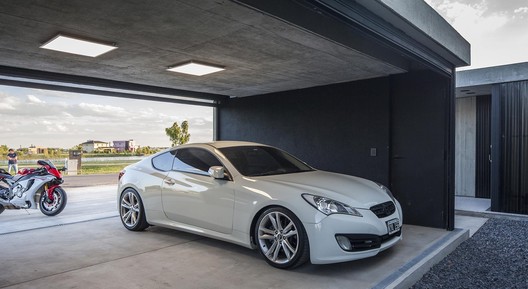 In order to channel one of the owner’s passions, the garage was given a special prominence, separating it from the rest of the house and designing it so that it could also function as a mechanical workshop and as an exhibition space for vehicles.