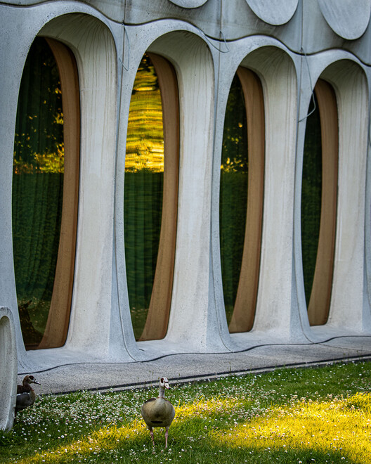 After years of intense experimentation, Constantin Brodzki, alongside Cimenteries Belges Réunies (CBR) and two Portuguese brothers specializing in plaster, achieved one of the project's most significant innovations: the prefabricated modules that would define the building's facade. The development process involved creating numerous test models, each refined until the ideal shape was reached. Once the final design was confirmed, epoxy molds were produced to ensure the precision and consistency of the pieces. This collaboration resulted in 756 prefabricated concrete modules, which not only established the building's visual identity but also represented a major construction innovation for the time. The modules' curved and organic shapes challenged the rigidity of traditional constructions, highlighting concrete's potential as both an artistic and functional material.