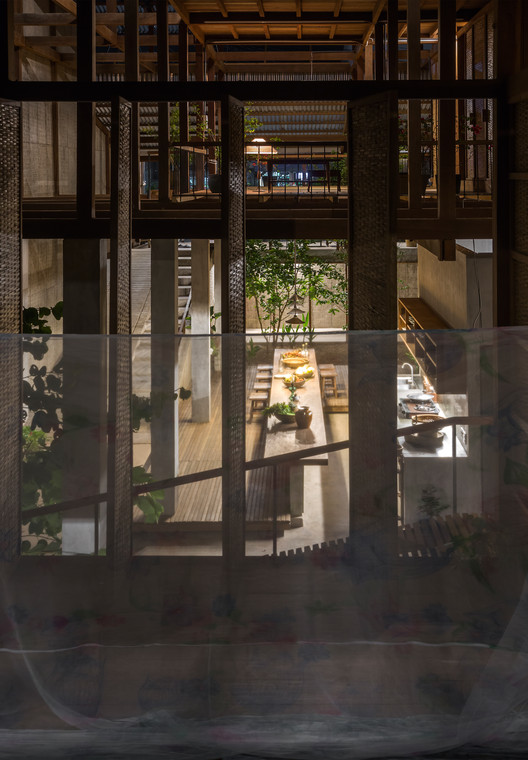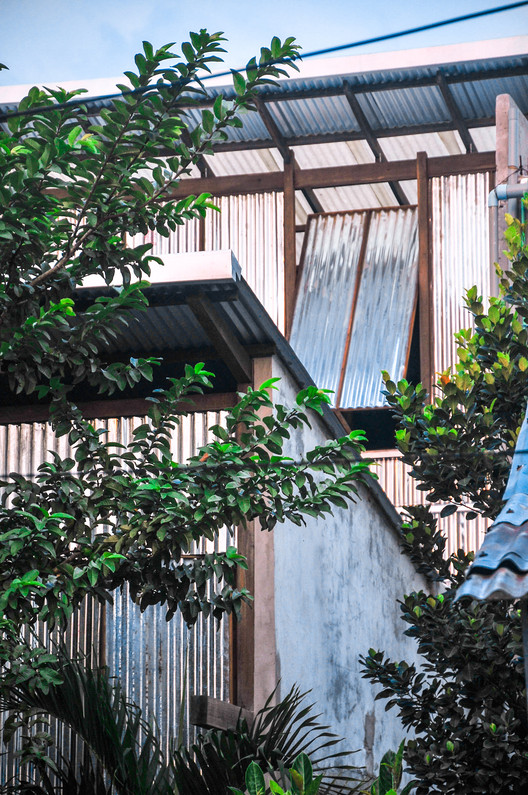 Text description provided by the architects. Located in a suburb of ChauDoc town in AnGiang province, Southern Vietnam, this house is a sharing residence of 3 nuclear families who are kin. Although this project budget was tightened with local standards, which only allowed us to build a house with thin corrugated metal panels, we have tried to satisfy not only the regional spirits but also the rich lifestyle in which is fulfilled by sunlight, greenery and natural ventilation, as it were, living in a half-outdoor gardens.