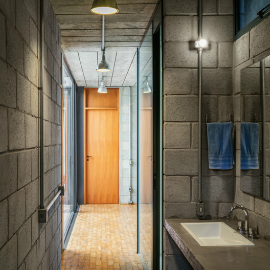 Text description provided by the architects. This house represents a very common situation in São Paulo, a long and narrow ground [5.6x30.0m], with only the front elevation free of interference of the buildings around it. The challenge increased from the moment that we had to meet an extensive program for this area, which led us to maximum occupancy allowed, 170m2.