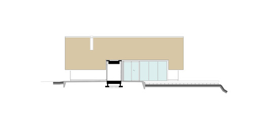 The main building, the left volume, is almost entirely made of glass. The living area and dining place are situated on the south-west and offer a panoramic view. Behind the glass facing the street, the kitchen, pantry and toilet are located. These function are combined in a wooden box. The master bedroom is completely private to the north.
