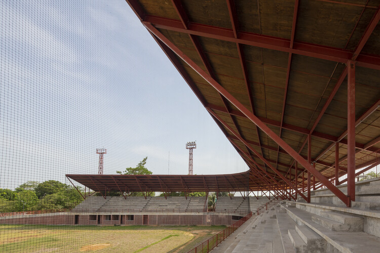 A multipurpose sports space that, through its walls, organizes public space, creating porches, seating areas, and extended shadows with a single architectural element. This design transparently defines boundaries with the landscape and democratizes access to sports events, integrating itself as a true public space.