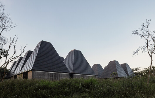 With three inclined planes and eight axes oriented toward the river, the project addresses water in all its dimensions: collection, treatment, recycling, and returning clean water to the river. It opens the city through a public plaza that connects the main hall with smaller rooms and defines a materiality suitable for its acoustic program, using coconut wood and local clay, promoting cross ventilation and natural light.