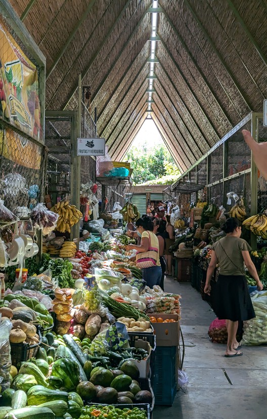 A commercial space that takes advantage of existing trees and connects a neighborhood through a main promenade defined by light and vegetation. The lightweight roof, made of bamboo from local communities, manages wind, light, and water for the benefit of its inhabitants.